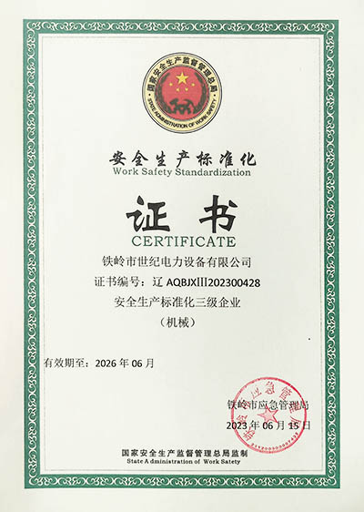 鐵嶺市世紀(jì)電力設(shè)備有限公司是集科研開發(fā)、生產(chǎn)制造、用戶服務(wù)于一體的國家高新技術(shù)企業(yè),始建于1999年,位于鐵嶺經(jīng)濟(jì)開發(fā)區(qū),占地面積5萬余平方米,建筑面積2萬余平方米。主要從事國家電網(wǎng)配套戶外高低壓隔離開關(guān)、電力電纜、變壓器成套裝置、高低壓開關(guān)柜、箱式變電站、絕緣子等產(chǎn)品的研發(fā)、生產(chǎn)和銷售。公司現(xiàn)有國家發(fā)明專利6項、實用新型專利9項,公司通過了ISO9001國際質(zhì)量管理體系認(rèn)證、ISO14001環(huán)境管理體系認(rèn)證和ISO 45001職業(yè)健康安全體系認(rèn)證。